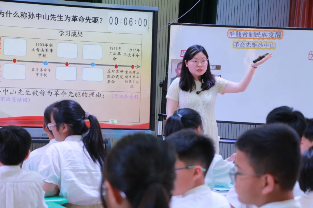义乌外国语学校赖雪娜老师带领学生了解革命先驱孙中山,探索革命先驱孙中山和其他革命党人为了推翻清朝反动统治、探索救国救民道路所进行的努力,感悟仁人志士英勇无畏的革命精神,了解辛亥革命的重要意义。