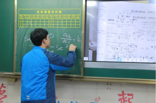 “我们一起看一下65页第四题......”“哪位同学来写一下我们学过的对数公式?”讲台上一个个阳光自信、声音洪亮、条理清晰、讲解熟练的不是任课老师,而是正在参加小老师过关考核的学生们。