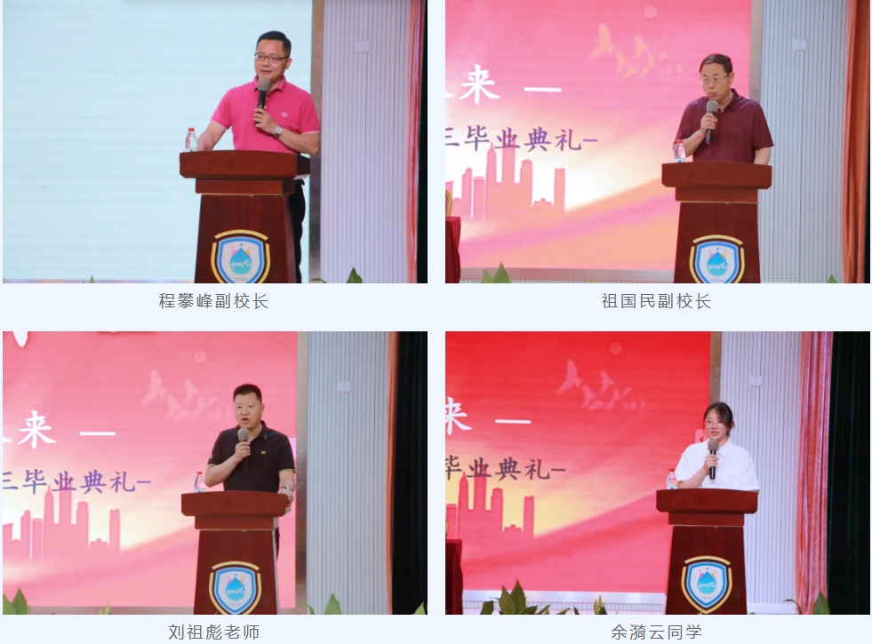 书记、常务副校长程攀峰及副校长、高中部主任祖国民对顺利完成高中学业的学子们表示热烈的祝贺。过去三年,你们主动参与课堂互动,学习能力显著增强;你们积极参加星级团队建设,关心爱护集体;你们时刻秉持“让人们因我而感到幸福”校训,成为优秀的英才少年。未来,希望你们继续保持学习热情,勇于探索未知,不断追求卓越,实现自身成长与蜕变。