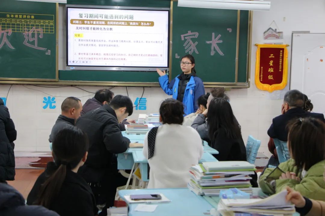 讲座后,家长们移步至各班教室,班主任详细介绍了首考后的班级整体情况以及高考的目标规划,并就学生的学习习惯、课堂表现及生活状况等方面进行了全面交流,并针对个别学生的具体情况提出了个性化的建议,让每位家长对孩子的学业进展有了更加清晰的认识。同时,学生们分享了复习过程中可能遇到的问题及解决办法,呼吁家长们协助自己冲刺最后八十多天。