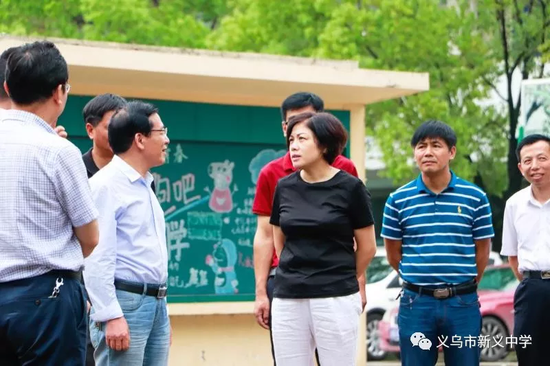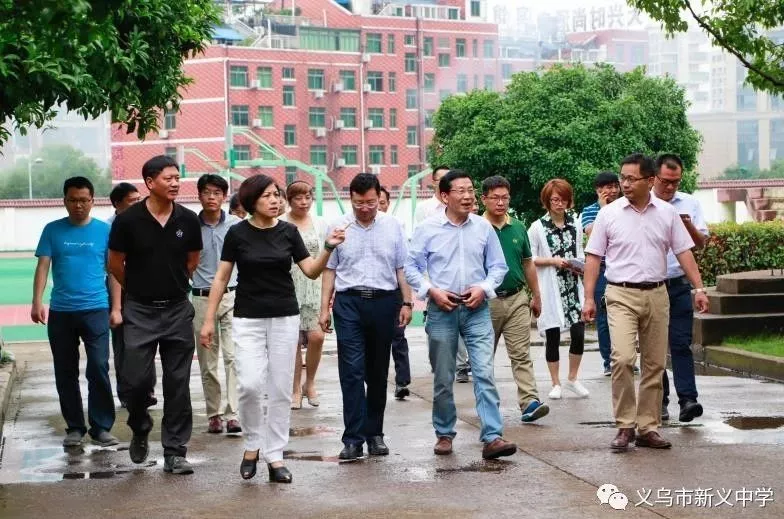5月26日上午8点半,骆副市长一行来到清新幽美的义乌外国语学校。下车伊始,骆副市长就站在校园里现场办公。